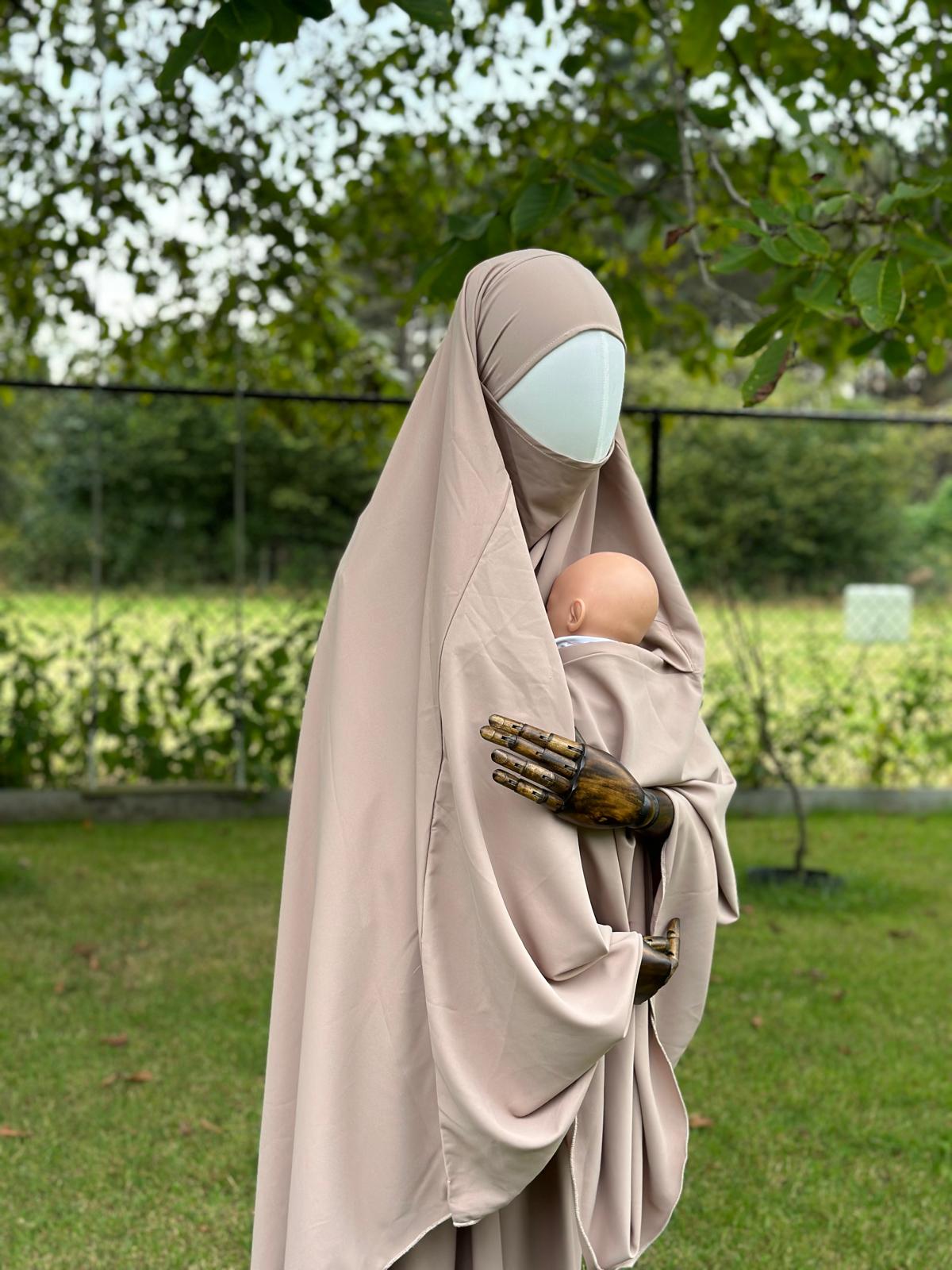 Our versatile Mothesty khimaar is the perfect blend of style and practicality, designed for both breastfeeding and babywearing. Made from soft, breathable fabric, it provides comfort for you and your baby. This khimaar offers a solution for discreet breastfeeding and extra modesty when carrying your baby.